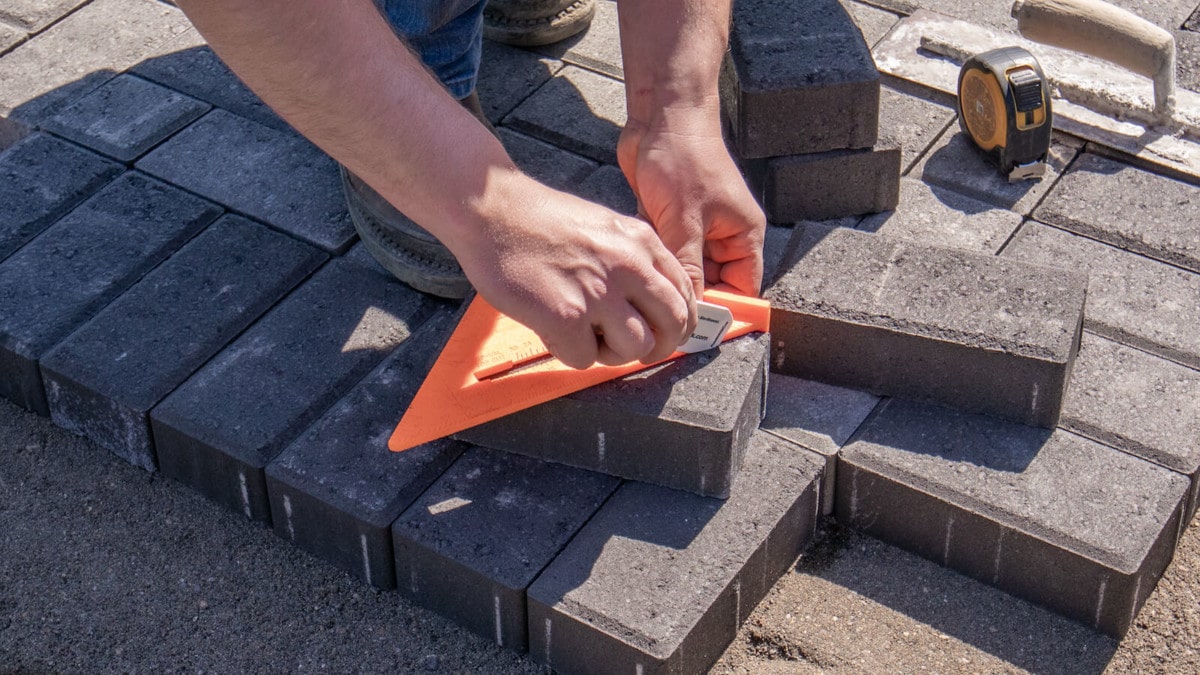 We cut our pavers in place by bringing the saw to the work. This means the blades hit the bedding sand under the pavers as we cut them. The bedding sand under the pavers is actually more abrasive than the pavers, and dulls the blade quicker than cutting the pavers on a table saw. Therefore, our blades don’t last quite as long as table saw blades. The big advantage to cutting in place is labor savings because it's faster.