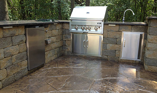 Nu-Again cleans and seals all of the vertical surfaces in an outdoor room as a standard part of their service to make everything look good. This includes retaining walls, seat walls, fire pits, fireplaces and outdoor kitchens. They also clean and seal some stamped concrete and other concrete flatwork in addition to pavers.