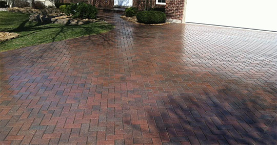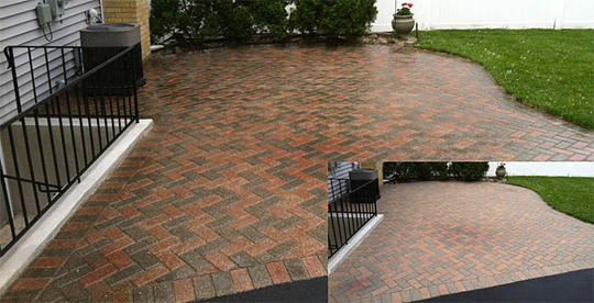 Day 1 – Maintenance visits always start with cleaning. They spray any weeds. They arrive with about 5 different cleaners so they're prepared for any type of stain they might come across. Then they use their surface washers and wands to clean the surface.In addition to cleaning, the power washing process removes the sand from the joints without weakening the sand bed.